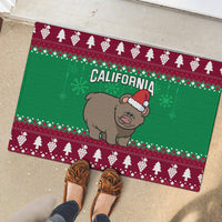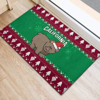 Custom California Christmas Rubber Doormat Santa Grizzly Bear With Grape