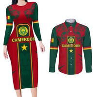 Custom Cameroon Football Couples Matching Long Sleeve Bodycon Dress and Long Sleeve Button Shirt 2024 African Nations Go Champions Lion Style