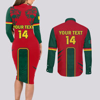 Custom Cameroon Football Couples Matching Long Sleeve Bodycon Dress and Long Sleeve Button Shirt 2024 African Nations Go Champions Lion Style LT14