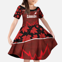 Custom Canadian Rugby Kid Short Sleeve Dress Maple Leaves Sporty Art Style Red Color