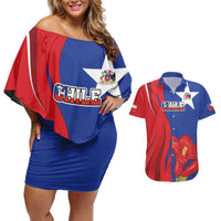 Custom Chile Independence Day Couples Matching Off Shoulder Short Dress and Hawaiian Shirt Lapageria Flower With Coat Of Arms