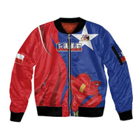 Custom Chile Independence Day Sleeve Zip Bomber Jacket Lapageria Flower With Coat Of Arms