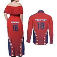 Custom Costa Rica Football Couples Matching Off Shoulder Maxi Dress and Long Sleeve Button Shirt Los Ticos Sporty Style