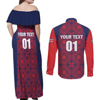 Custom Costa Rica Football Couples Matching Off Shoulder Maxi Dress and Long Sleeve Button Shirt Los Ticos Unique Pattern