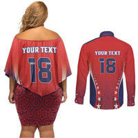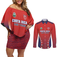 Custom Costa Rica Football Couples Matching Off Shoulder Short Dress and Long Sleeve Button Shirt Los Ticos Sporty Style