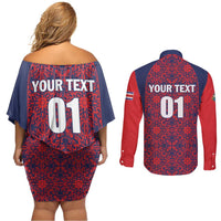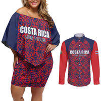 Custom Costa Rica Football Couples Matching Off Shoulder Short Dress and Long Sleeve Button Shirt Los Ticos Unique Pattern