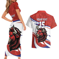 Custom Costa Rica Football Couples Matching Short Sleeve Bodycon Dress and Hawaiian Shirt Los Ticos With Bull Mascot LT15