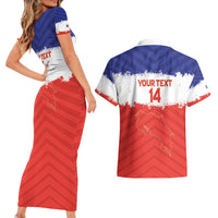 Custom Costa Rica Football Couples Matching Short Sleeve Bodycon Dress and Hawaiian Shirt Map With Los Ticos Sporty Style