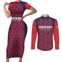 Custom Costa Rica Football Couples Matching Short Sleeve Bodycon Dress and Long Sleeve Button Shirt Los Ticos Unique Pattern