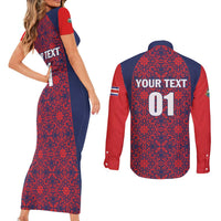 Custom Costa Rica Football Couples Matching Short Sleeve Bodycon Dress and Long Sleeve Button Shirt Los Ticos Unique Pattern LT01