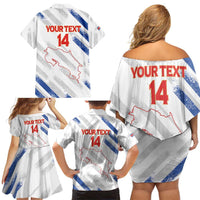 Custom Costa Rica Football Family Matching Off Shoulder Short Dress and Hawaiian Shirt Go Champions Los Ticos