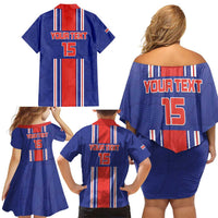 Custom Costa Rica Football Family Matching Off Shoulder Short Dress and Hawaiian Shirt Vamos Ticos!