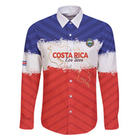 Custom Costa Rica Football Family Matching Off The Shoulder Long Sleeve Dress and Hawaiian Shirt Map With Los Ticos Sporty Style LT14