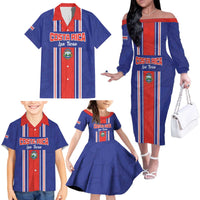 Custom Costa Rica Football Family Matching Off The Shoulder Long Sleeve Dress and Hawaiian Shirt Vamos Ticos! LT15