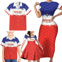 Custom Costa Rica Football Family Matching Short Sleeve Bodycon Dress and Hawaiian Shirt Map With Los Ticos Sporty Style