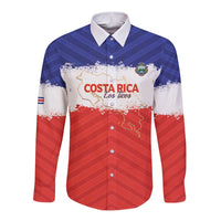 Custom Costa Rica Football Long Sleeve Button Shirt Map With Los Ticos Sporty Style