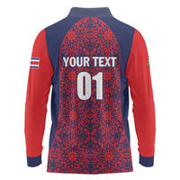 Custom Costa Rica Football Long Sleeve Polo Shirt Los Ticos Unique Pattern