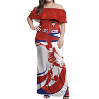 Custom Costa Rica Football Off Shoulder Maxi Dress Los Ticos With Bull Mascot