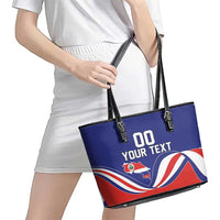 Custom Costa Rica Independence Day Leather Tote Bag Turdus Grayi Bird With Coat Of Arms