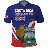 Custom Costa Rica Independence Day Polo Shirt Turdus Grayi Bird With Coat Of Arms