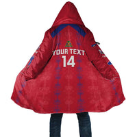 Step out in ultimate style and unmatched comfort with the Custom Haiti Football Cloak Les Grenadiers Veve Vodou Red from Wonder Print Shop. Whether you're heading to a festival, party, sporting event, or cozying up at a campsite, this handcrafted hooded cloak lets you make a statement while keeping warm.