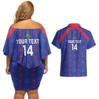 Custom Haiti Football Couples Matching Off Shoulder Short Dress and Hawaiian Shirt Les Grenadiers Veve Vodou Blue