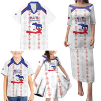Custom Haiti Football Family Matching Puletasi and Hawaiian Shirt Les Grenadiers Veve Vodou White