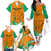 Custom Ivory Coast Football Family Matching Off Shoulder Long Sleeve Dress and Hawaiian Shirt 2024 Go Champions Les Elephants