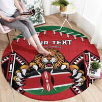 Custom Kenya Rugby Round Carpet Lion Mascot African Pattern