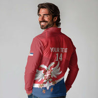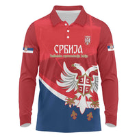 Custom Serbia Football Long Sleeve Polo Shirt Come On Ealges Coat Of Arms Style