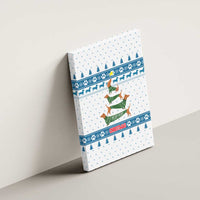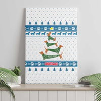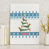Dachshund Dog Tree Stack Canvas Wall Art with Blue White Paw Print Pattern Design