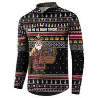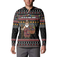 East Timor Christmas Button Sweatshirt with Santa in Traditional Robe Gift Basket Ho Ho Ho Text and Black Festive TS04
