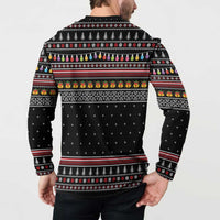 East Timor Christmas Button Sweatshirt with Santa in Traditional Robe Gift Basket Ho Ho Ho Text and Black Festive