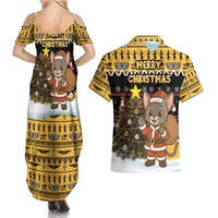 Egypt Christmas Couples Matching Summer Maxi Dress and Hawaiian Shirt with Santa Cat Sleigh Reindeer Christmas Tree and Ancient Hieroglyphic
