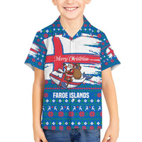 Faroe Islands Christmas Kid Hawaiian Shirt with Santa Riding Whale Faroe Flag and Blue Nordic Winter Pattern Design TS04