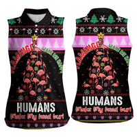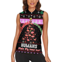 Flamingo Make Me Happy Christmas Women Sleeveless Polo Shirt Funny Xmas Holiday Patterns