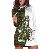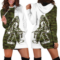 Funny Bigfoot Green Military Texture Fish Hoodie Dress