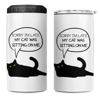 Funny Black Cat 4 in 1 Can Cooler Tumbler Sorry I'm Late My Cat Was Sitting On Me Humor Saying Coffee Cup Of Kitty Owners TB10