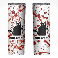 Funny Black Cat What Skinny Tumbler Murderous Cat Holding Knife Halloween Costume Killer TB10