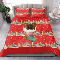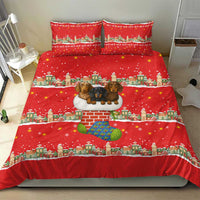 Funny Dachshund Dog Light Up Christmas Bedding Set Snowy Village Red Holiday Design TS04