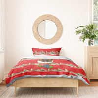 Funny Dachshund Dog Light Up Christmas Bedding Set Snowy Village Red Holiday Design