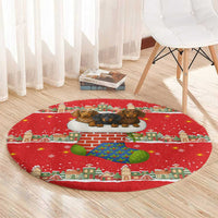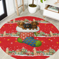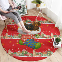 Funny Dachshund Dog Light Up Christmas Round Carpet Snowy Village Red Holiday Design
