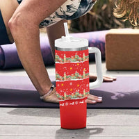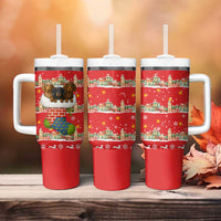 Funny Dachshund Dog Light Up Christmas Tumbler With Handle Snowy Village Red Holiday Design TS04