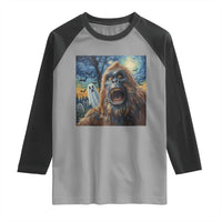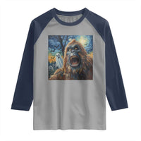 Funny Halloween Raglan Shirt Bigfoot Selfie With Ghost Starry Night Art