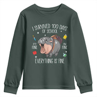 Funny I Survived 100 Days Of School Moo Deng Youth Sweatshirt It's I'm Fine Everything Is Fine