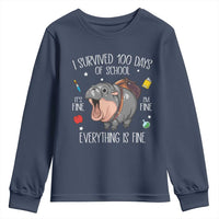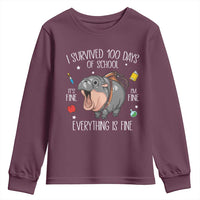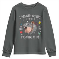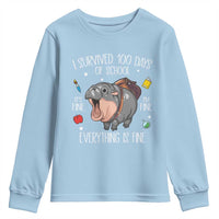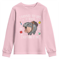 Funny I Survived 100 Days Of School Moo Deng Youth Sweatshirt It's I'm Fine Everything Is Fine TS11