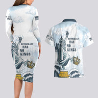 Funny Rejecting Kings Couples Matching Long Sleeve Bodycon Dress and Hawaiian Shirt Since 1776 No Kings In America Retro Style LT05