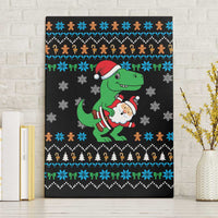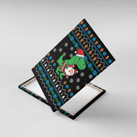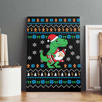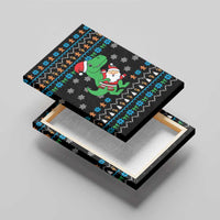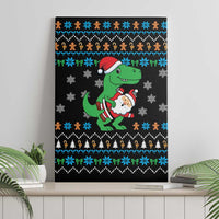 Funny Santa Riding Dinosaur Christmas Canvas Wall Art Gingerbread Snowflake Pattern