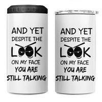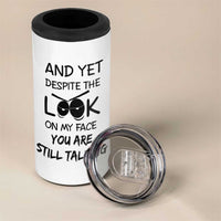 Funny Sarcastic 4 in 1 Can Cooler Tumbler Despite The Look On My Face You Are Still Talking