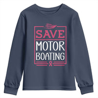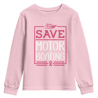 Funny Save Motor Boating Youth Sweatshirt Beat Breast Cancer Pink Ribbon